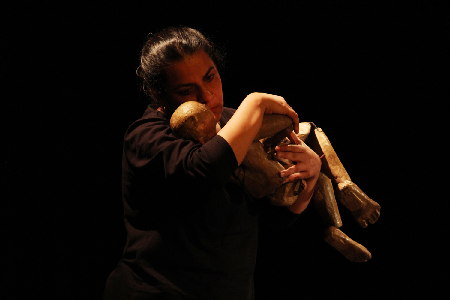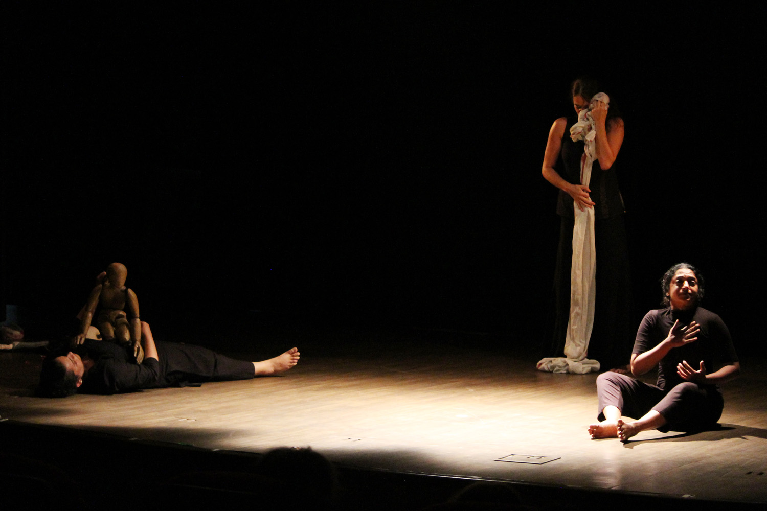 Esa escritura suma las diferentes lenguas indias (malayalam, hindi) que dialogan con los versos en castellano de Calderón, y también es escritura en gestos, en movimientos, en pasos de danza, en movimientos físicos o de las marionetas o los objetos, como parte de ese relato realizado en primera persona del plural femenino.